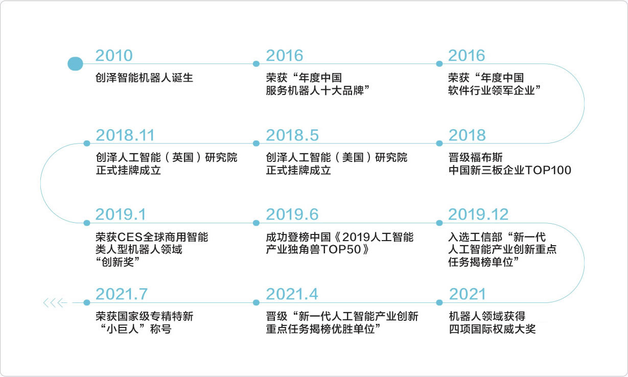 創澤智能機器人集團股份有限公司成立于2010年,是集研發、生產、銷售于一體的國家高新技術企業、是工業和信息化部“新一代人工智能產業創新重點任務”揭榜單位與優勝單位、榮獲吳文俊人工智能科技進步獎、國家專精特新“小巨人”稱號,擔負著為國家開展智能公共服務機器人項目技術攻關的使命。全球榮獲CES創新獎的商用類人型智能服務機器人企業、中國智能服務機器人領軍企業。