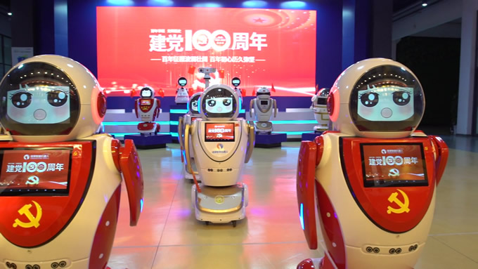 蘇澤米進(jìn)黨建大廳迎賓機(jī)器人