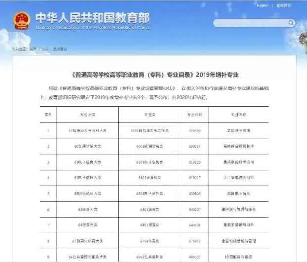 并公布了《普通G等學校G等職業教育(專科)專業目錄》增補專業,包含人工智能技術服務的六大類,9個專業增補進入G職專業目錄,從2020年起執行。