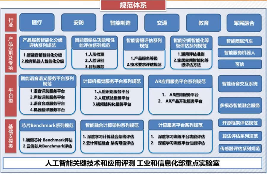 AIIA相關技術和應用L域評估規范:《中文語音合成服務系統評估規范》、《中文語音識別服務系統評估規范》、《聲紋識別(自動說話人)服務系統評估規范》、《智能音箱化等J指標要求和評估方法》、《機器翻譯服務系統評估規范》、《智能客服系統 第1部分:功能指標要求和評估方法》