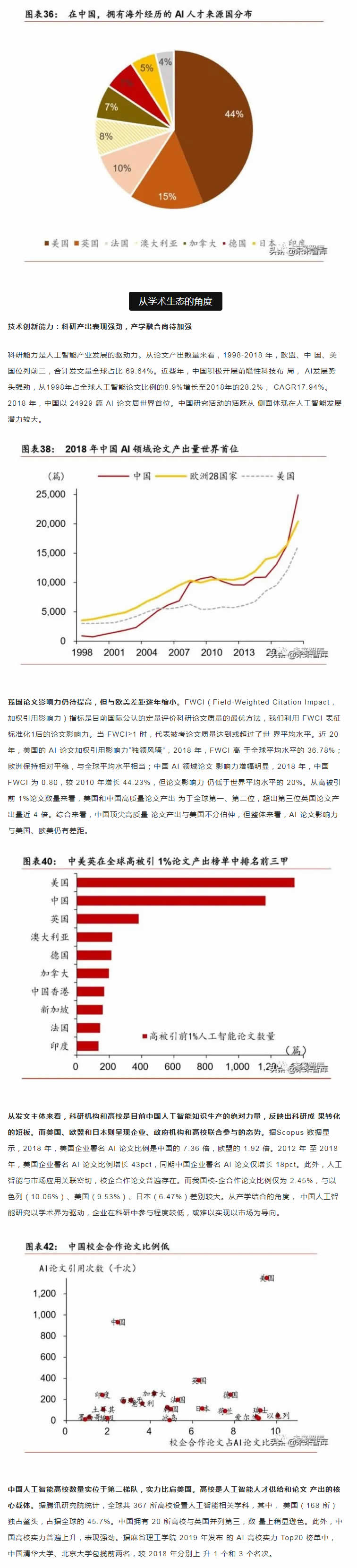 從中短期看,技術(shù)優(yōu)化、落地場景的開拓和滲透是是主要的增長點;從長期看,智能生 態(tài)體系建設(shè)才是彎道超車的必由之路。人工智能產(chǎn)業(yè)的核心競爭力在于生態(tài)體系的建設(shè), 包括大數(shù)據(jù)、算法理論、底層技術(shù)、應(yīng)用生態(tài)、人才儲備等層面。而我國人工智能產(chǎn)業(yè)生 態(tài)和基礎(chǔ)設(shè)施建設(shè)正處于探索期,如何實現(xiàn)核心技術(shù)的突破和拓寬人工智能技術(shù)與社會經(jīng) 濟融合場景著力點在于人才儲備和持續(xù)的研發(fā)投入。從人才的角度,收窄技術(shù)差距的根本 在于優(yōu)化人的知識結(jié)構(gòu)和能力。當前政策應(yīng)側(cè)重建立人才培養(yǎng)體系,為人工智能打造人才 資源池,尤其是在基礎(chǔ)學(xué)科L域突破人才瓶頸。同時,打破“唯數(shù)量論”的科研評價和考 核體系,改變?nèi)瞬偶顧C制勢在必行。我國人工智能專利申請和科研產(chǎn)出數(shù)量L先, 但質(zhì)量堪憂。唯有從源頭改變評價機制,才能扭轉(zhuǎn)“量多而質(zhì)優(yōu)”的問題。從研發(fā)的角度, 企業(yè)技術(shù)優(yōu)化和創(chuàng)新能力是解決產(chǎn)業(yè)痛點的關(guān)鍵;A(chǔ)研究的投入周期長、不確定性大、 和風險G特點決定了其難以短期內(nèi)獲得投資回報,但基礎(chǔ)L域的突破將為經(jīng)濟帶來長期和 廣泛的溢出效應(yīng),因此,國內(nèi)更應(yīng)關(guān)注底層技術(shù)的研發(fā)投入,扭轉(zhuǎn)傳統(tǒng)技術(shù)路徑,顛覆核 心技術(shù)受制于人的被動局面。此外,人工智能在賦能機器模擬人類進行決策的同時產(chǎn)生的 倫理道德、隱私保護和社會安全問題值得關(guān)注。由于法律法規(guī)存在滯后性,尚無法對人工 智能技術(shù)進行有效監(jiān)管。我國應(yīng)加快人工智能倫理研究,及早識別人工智能治理風險。