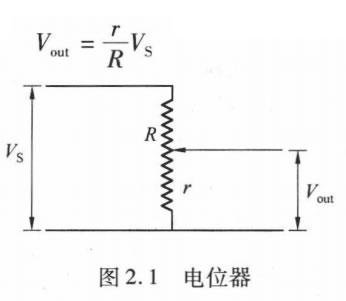 電位器是Z簡(jiǎn)單的位置傳感器,如圖2.1所示。電位器通 過(guò)電阻把位置信息轉(zhuǎn)化為隨位置變化的電壓,通過(guò)檢測(cè)輸出電 壓的變化確定以電阻中心為基準(zhǔn)位置的移動(dòng)距離。當(dāng)電阻器 上的滑動(dòng)觸頭隨位置變化在電阻器上滑動(dòng)時(shí),觸頭接觸點(diǎn)變化 前后的電阻阻值與總阻值之比就會(huì)發(fā)生變化。在功能上,電位 器充當(dāng)了分壓器的作用,因此輸出電壓Vout 與可變電阻r 成 比 例,即