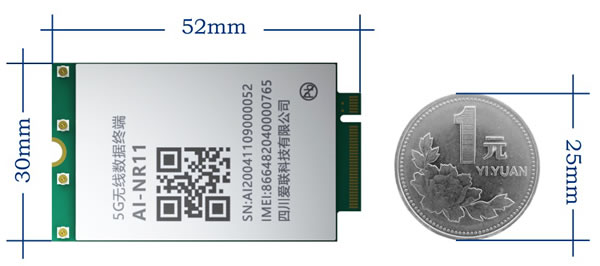 AI-NR11 5G模組采用標準M.2封裝設計,寬度僅比1元硬幣寬5mm,真正做到了和4G模組同尺寸。采用四天線替代八天線,通過天線輪詢SRS功能,智能快速選出優天線方案,有效提升上網速率體驗。從一款5G工業互聯網模組下線到該模組的成功研發,時間跨度不到5個月。