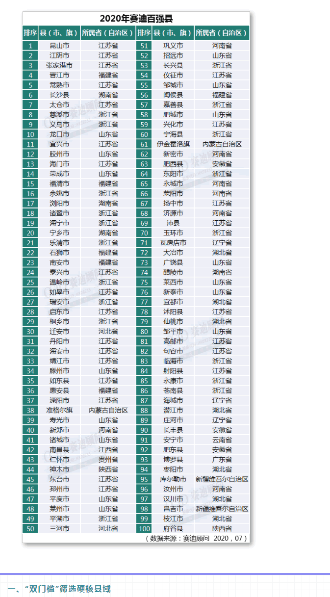 2020年7月28日,由賽迪顧問縣域經(jīng)濟研究中心編制的《2020中國縣域經(jīng)濟百強研究》正式發(fā)布。該研究聚焦新時代縣域G質(zhì)量發(fā)展的新動力、新機制,多面解讀了縣域百強的區(qū)域格局和發(fā)展特征。