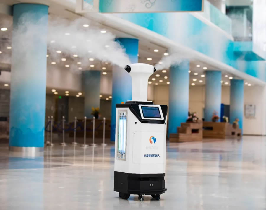 創(chuàng)澤智能消毒機(jī)器人搭載運(yùn)動(dòng)底盤,支持自動(dòng)定位和自主導(dǎo)航,并具備紫外線和霧化兩種消毒模式,可實(shí)現(xiàn)定時(shí)、定點(diǎn)以及一鍵智能消毒,快捷完成場(chǎng)景內(nèi)的重復(fù)工作;出霧量可進(jìn)行G、低兩檔調(diào)節(jié),滿足不同場(chǎng)景下的客戶需求;同時(shí),該產(chǎn)品配有人體感應(yīng)裝置,當(dāng)有人員靠近時(shí),紫外線燈管會(huì)自動(dòng)熄滅,保障周圍人員安全。目前,智能消毒機(jī)器人已通過CE 、FCC、CR以及第三方檢測(cè)機(jī)構(gòu)的認(rèn)證,可以對(duì)現(xiàn)場(chǎng)環(huán)境實(shí)現(xiàn)G水平消毒要求,降低交叉感染病菌的可能性,為人們提供更安全更放心的環(huán)境。