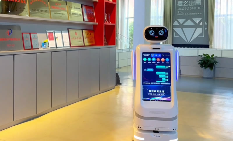 機器人配合3D視覺,看到來訪人員會主動打招呼,啟動智能迎賓;由自身攜帶的蓄電池,實現識別和躲避障礙物自主行走;語音講解,輔以圖片、視頻等補充介紹,使內容更生動。